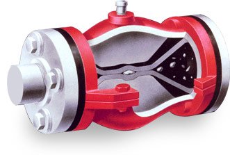 A cost-effective flow control valve, pinch valves are ideal for applications of slurries or liquids containing significant amounts of suspended solids. Pinch valves seal using one or more flexible elements like rubber tubes that become pinched to turn off the flow. These rubber sleeves are the valve’s only wetted part, and their flexibility allows pinch valves to close tightly around entrapped solids. Air or hydraulic pressure is placed directly on the elastomer sleeve to actuate pinch valves. A pinch valve’s body acts as a built-in actuator, which eliminates expensive hydraulic, pneumatic, or electric operators and results in the cost-effectiveness of this type of flow control valve.